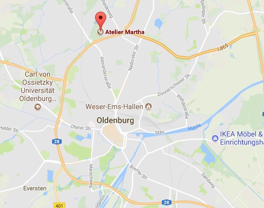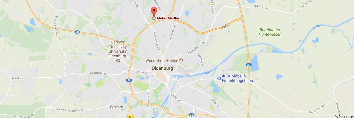 Alle Kurse finden statt am Atelier MARTHA; Hackenweg 33, D-26127 Oldenburg. Unter diesem Link gelangen Sie zur Ansicht in Google Maps, wo Sie sich auch eine einfache Wegbeschreibung anzeigen lassen können.